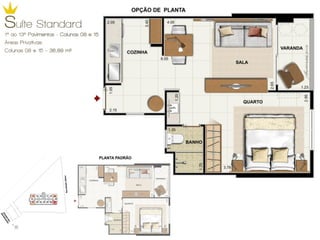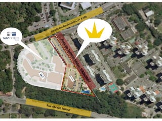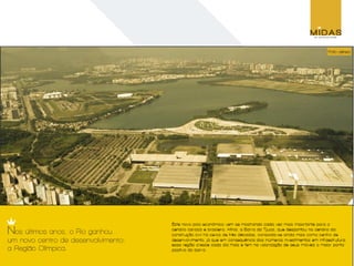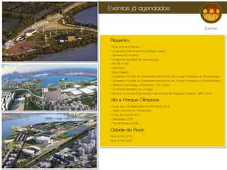 O documento descreve um projeto de construção de um centro de convenções com 203 unidades residenciais e diversos serviços como piscina, academia, restaurante e estacionamento. Localizado na região Olímpica do Rio de Janeiro, o empreendimento terá 5.426,26m2 de área total e contará com medidas sustentáveis como reuso de água da chuva e coleta seletiva de lixo.