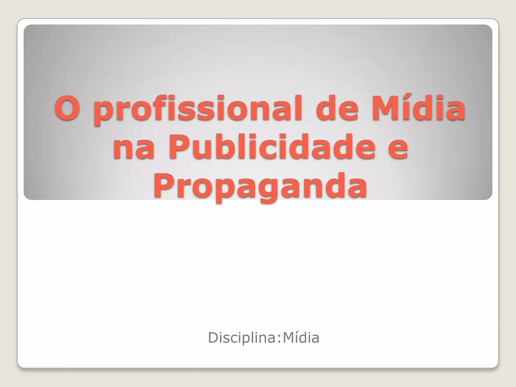 O documento descreve o papel e importância do profissional de mídia na publicidade e propaganda. Esses profissionais são consultores estratégicos que analisam grandes volumes de dados sobre consumidores para desenvolver campanhas midiáticas eficientes. Eles também atuam como facilitadores entre agências e veículos de comunicação.