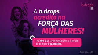 O documento lista influenciadores digitais que produzem conteúdo em parceria com a equipe de jornalismo b.drops, incluindo seus nomes e alcance nas redes sociais. Também descreve que o inventário publicitário da b.drops agora está disponível para compra em plataformas de mídia programática, e lista plataformas onde isso é possível.