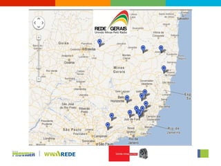 O documento descreve a Rede Gerais de Rádio, recém-lançada no estado de Minas Gerais pelo empresário Geraldo Magno. A rede possui várias emissoras de rádio AM e FM espalhadas por Minas Gerais, alcançando uma audiência de mais de 2,2 milhões de pessoas com programação eclética. A rede tem como público-alvo adultos acima de 25 anos, predominantemente da classe ABC.