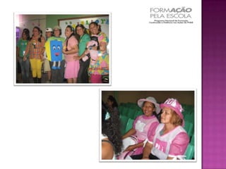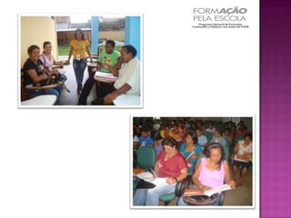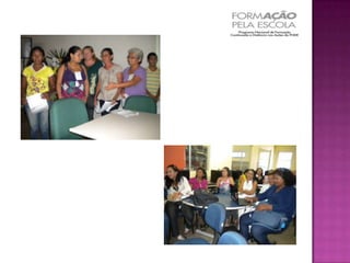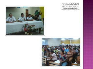 O documento descreve o Programa Nacional de Formação Continuada a Distância nas Ações do FNDE, chamado de Formação pela Escola, que tem como objetivo fortalecer os agentes envolvidos na execução dos programas educacionais financiados pelo FNDE. O programa oferece cursos de capacitação sobre a execução das ações do FNDE. O resultado esperado é a melhoria do desempenho dos programas do FNDE e, consequentemente, da qualidade do ensino no país.