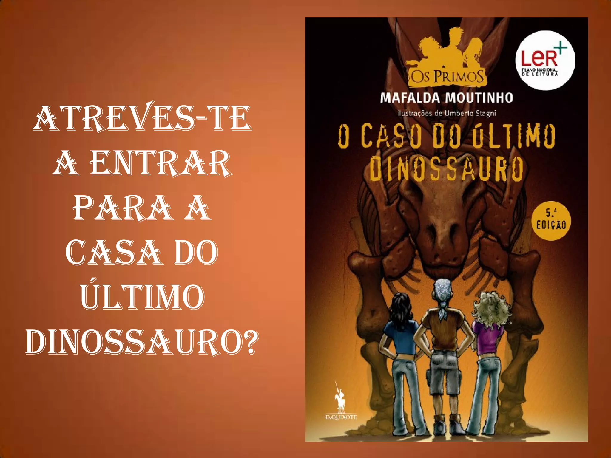 Este livro sobre dinossauros é uma grande aventura cheia de enigmas e alguma comédia, que também ensina fatos históricos sobre dinossauros. A história envolve jovens que ouvem um ruído se aproximando e parando repentinamente.