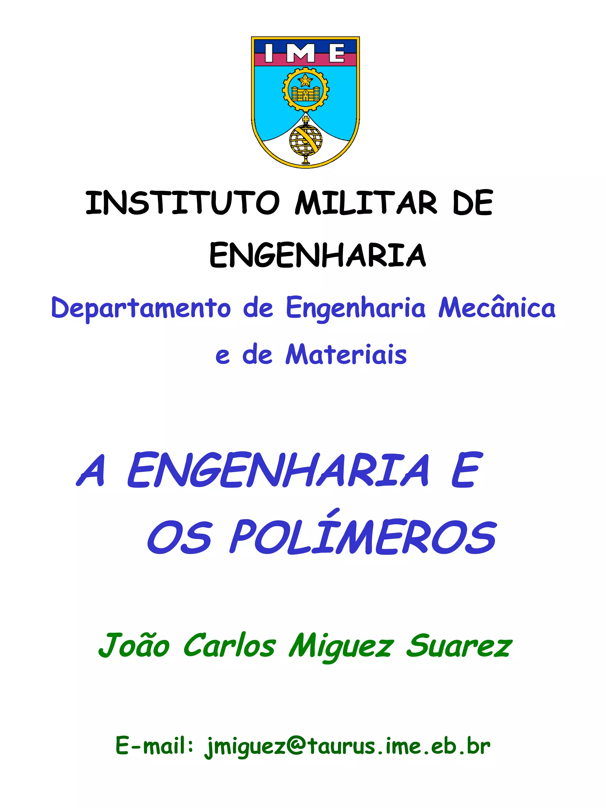 1. O documento discute as propriedades e aplicações dos polímeros na engenharia. 2. Os polímeros são amplamente usados em diversas indústrias devido à sua versatilidade, leveza e baixo custo. 3. Novas técnicas de síntese permitiram o desenvolvimento de polímeros inteligentes, nanocompósitos e biomateriais com novas aplicações.