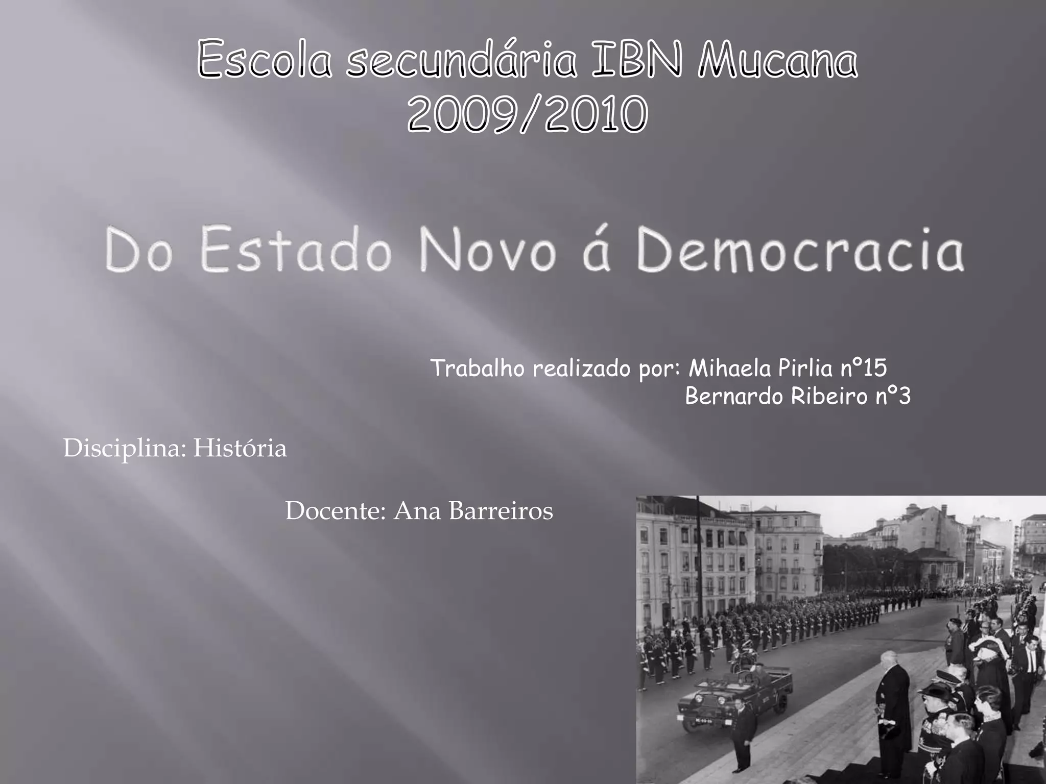 1) O documento descreve a história de Portugal do Estado Novo à democracia, incluindo a ditadura salazarista, a revolução dos Cravos e a descolonização. 2) A revolução dos Cravos em 1974 pôs fim à ditadura e instaurou a democracia em Portugal sem derramamento de sangue. 3) A descolonização resultou na independência das antigas colônias portuguesas e na perda da dimensão imperial de Portugal.