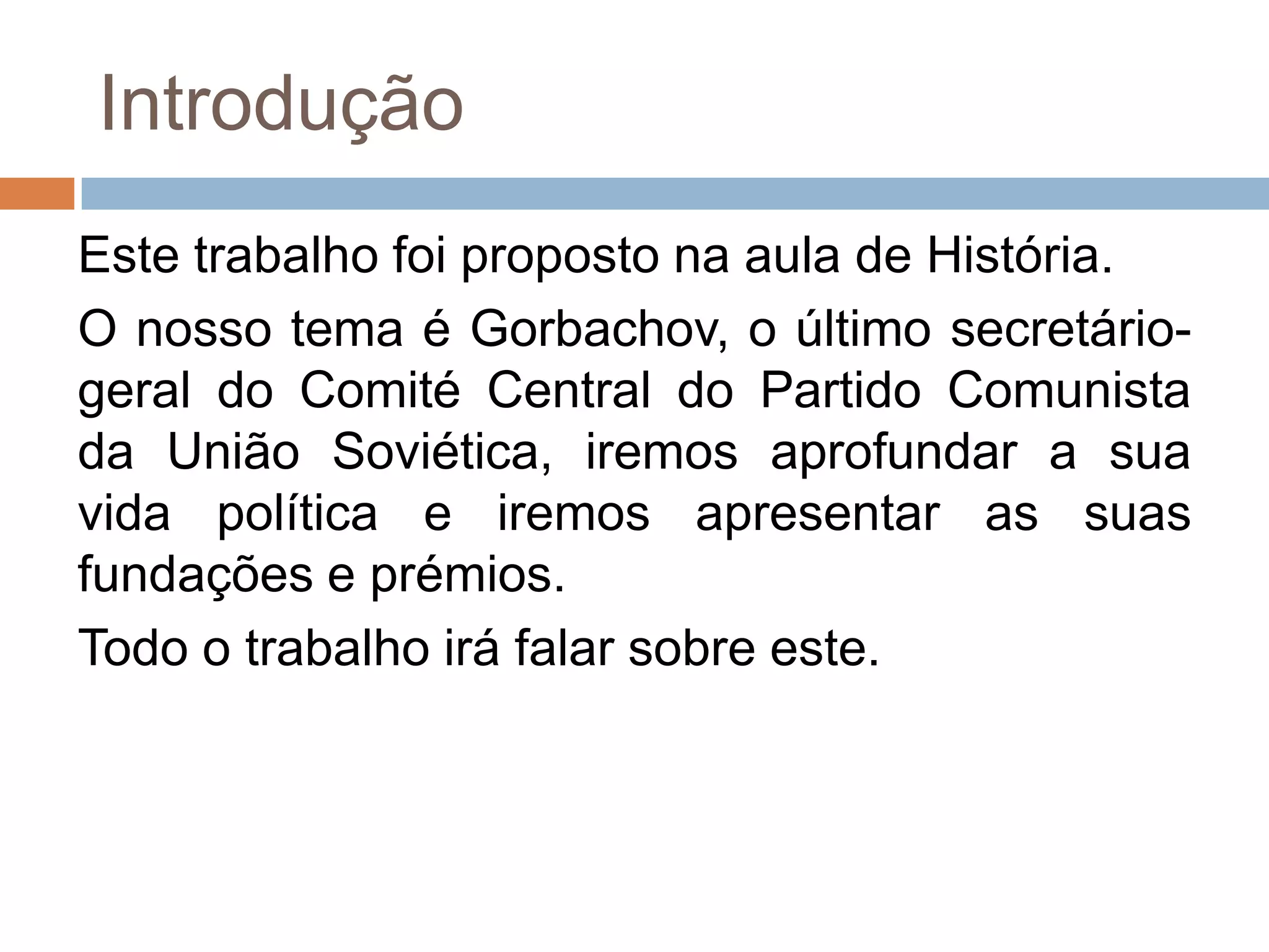 Mikhail Gorbachov foi o último líder da União Soviética, tentando reformas democráticas que levaram ao colapso do regime comunista. Como secretário-geral do Partido Comunista da União Soviética entre 1985-1991, introduziu as políticas de glasnost (abertura) e perestroika (reestruturação), mas não conseguiu evitar a desintegração do país. Sua tentativa de manter a União Soviética resultou em sua renúncia em 1991.