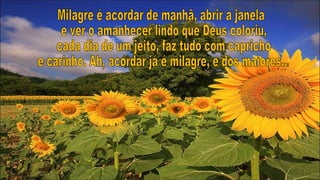 O documento discute milagres de forma breve. Não há informações sobre o autor ou contexto do texto. A formatação foi feita por Amélia Soares, que pode ser contatada por email.