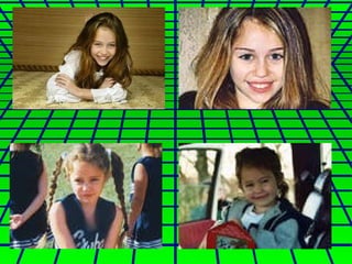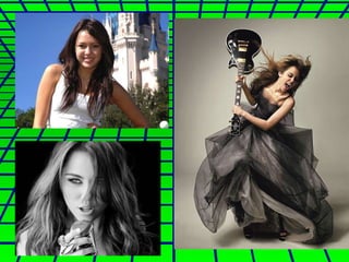 Miley Cyrus cresceu no Tennessee antes de se tornar famosa no papel de Hannah Montana. Ela se tornou uma estrela pop global com vários álbuns de sucesso e prêmios, incluindo por Melhor Atriz de TV e Melhor Cantora. Atualmente, Miley continua sua carreira musical e filantrópica.