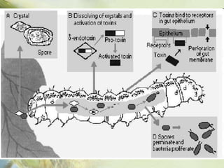 2) É descrito o mecanismo de ação do Bt e como ele afeta as principais pragas-alvo no Brasil, como Spodoptera frugiperda e Diatraea saccharalis.