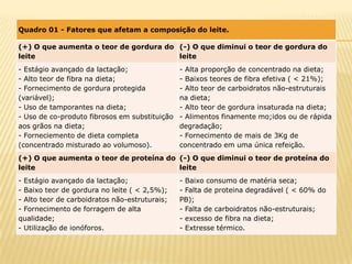 A qualidade do leite é importante para a indústria e consumidores. A empresa Danone exige padrões rígidos de qualidade dos fornecedores, como tanques de resfriamento e vacas vacinadas. Um sistema de pagamento por qualidade avalia parâmetros como gordura, proteína, contagem de células somáticas e bactérias. Produtores devem adotar boas práticas de saúde animal, ordenha e armazenamento para obter melhor preço.