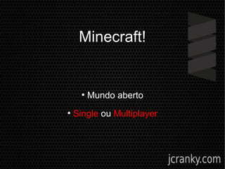 Minecraft é um jogo de mundo aberto onde os jogadores podem construir e explorar. Apresentação discute modding em Minecraft usando Scala, incluindo ferramentas como MinecraftForge e Bukkit que permitem criar mods para clientes e servidores respectivamente. Demonstrações mostram exemplo de mod e plugin feitos em Scala.