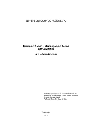 Este documento discute mineração de dados (data mining) e como ela pode ser usada para descobrir padrões e relacionamentos nos dados de forma automática para prever resultados de negócios futuros. O documento explica que a mineração de dados passa por quatro fases: preparação de dados, análise e classificação de dados, aquisição de conhecimento e prognóstico. Ferramentas de mineração de dados usam algoritmos como redes neurais e árvores de decisão para modelar os dados e fazer previsões.