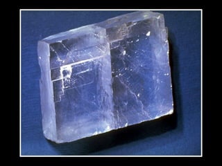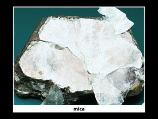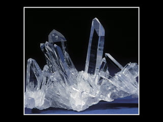 O documento discute minerais, sua ocorrência natural e composição química. Apresenta os principais elementos na crosta terrestre e estrutura atômica. Explica a formação de minerais e apresenta exemplos importantes como quartzo, calcita, olivina e seus respectivos símbolos químicos.