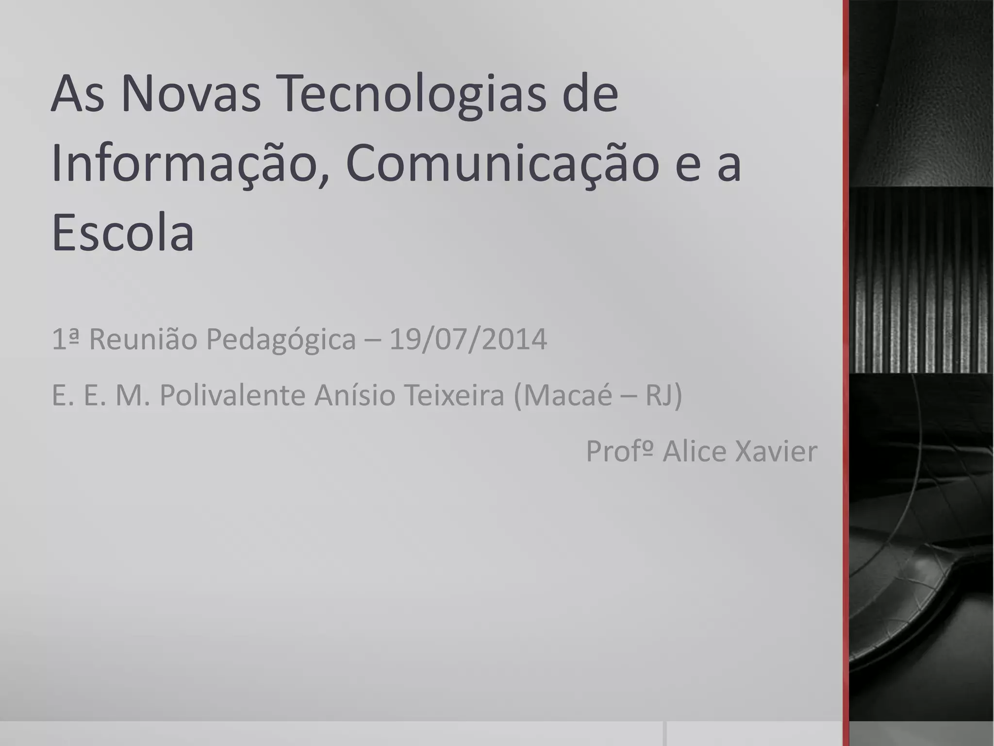 O documento discute o uso das novas tecnologias de informação e comunicação na educação. Aborda tópicos como a história do ensino a distância e uso de recursos tecnológicos, nativos e imigrantes digitais, hipertexto, redes sociais, blogs, vídeos, aplicativos, tablets e a importância do planejamento pedagógico para a integração das tecnologias no ensino.