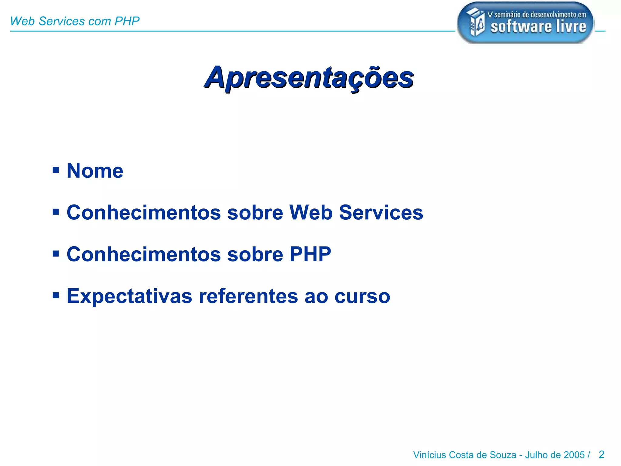 O documento é um minicurso sobre web services com PHP, abordando conceitos, arquitetura e tecnologias como XML, WSDL, SOAP e UDDI. Ele inclui exemplos práticos de implementação de serviços com XML-RPC, NuSOAP e PEAR. O conteúdo fornece aos participantes uma compreensão básica sobre web services e sua implementação em PHP.