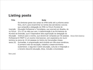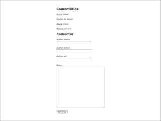 Criação de uma aplicação em Ruby on Rails para gerenciar posts e comentários. Inclui validação de dados, layout da página, melhoria das views, ordenação dos posts, criação de comentários e associação entre posts e comentários, além de exigir login para comentar.