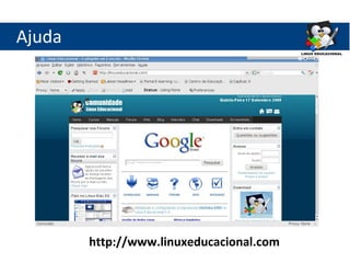 Este documento introduz o Linux Educacional, discutindo hardware versus software, sistemas operacionais, software livre e Linux. Ele também descreve as principais distribuições Linux, o ambiente gráfico KDE, e como usar aplicativos como o BrOffice, navegador Firefox e utilitários no Linux Educacional.