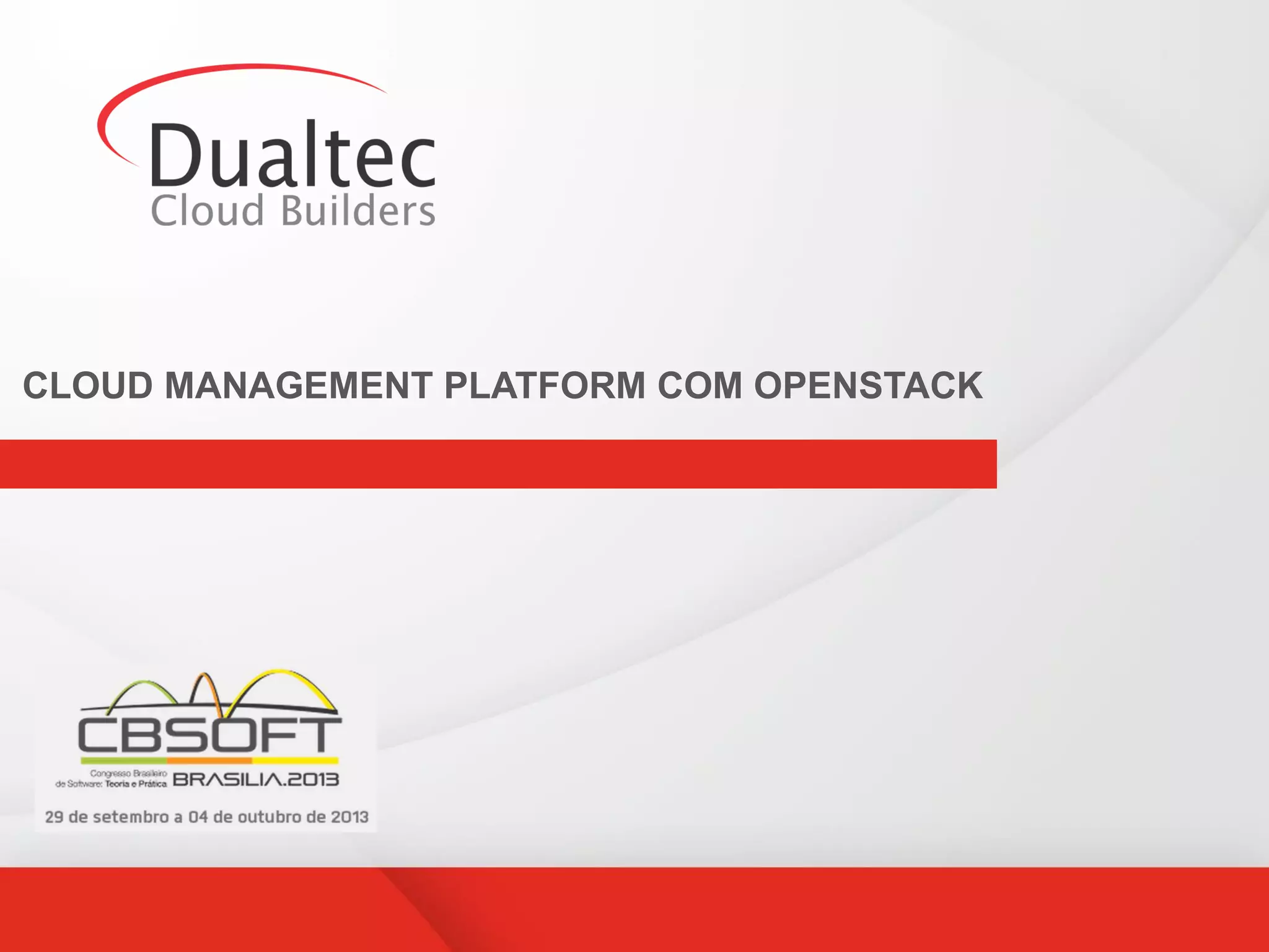 O documento descreve uma plataforma de gestão de nuvem baseada em OpenStack da empresa Dualtec Cloud Builders. Apresenta os principais projetos do OpenStack como Nova, Swift, Glance, Keystone, Neutron, Cinder e Horizon. Também discute a comunidade OpenStack no Brasil e eventos como o OpenStack Summit.
