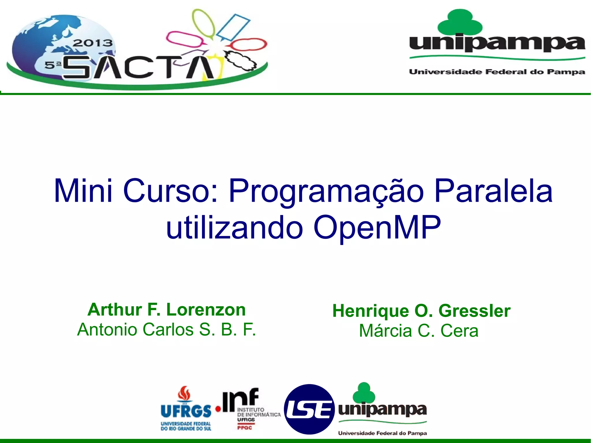O documento apresenta um mini-curso sobre programação paralela utilizando OpenMP. Ele introduz os palestrantes e seus backgrounds, objetivos do curso, e um roteiro que inclui a evolução dos microprocessadores, programação paralela, OpenMP e desafios futuros.