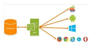 O documento aborda a definição e objetivos de APIs, explicando como elas permitem a interoperabilidade entre softwares. Discute o uso do REST e do protocolo HTTP para comunicação entre cliente e servidor, incluindo métodos básicos de operação. Também aborda injeção de dependência no .NET Core, destacando sua importância para a flexibilidade da aplicação e a facilitação de testes.
