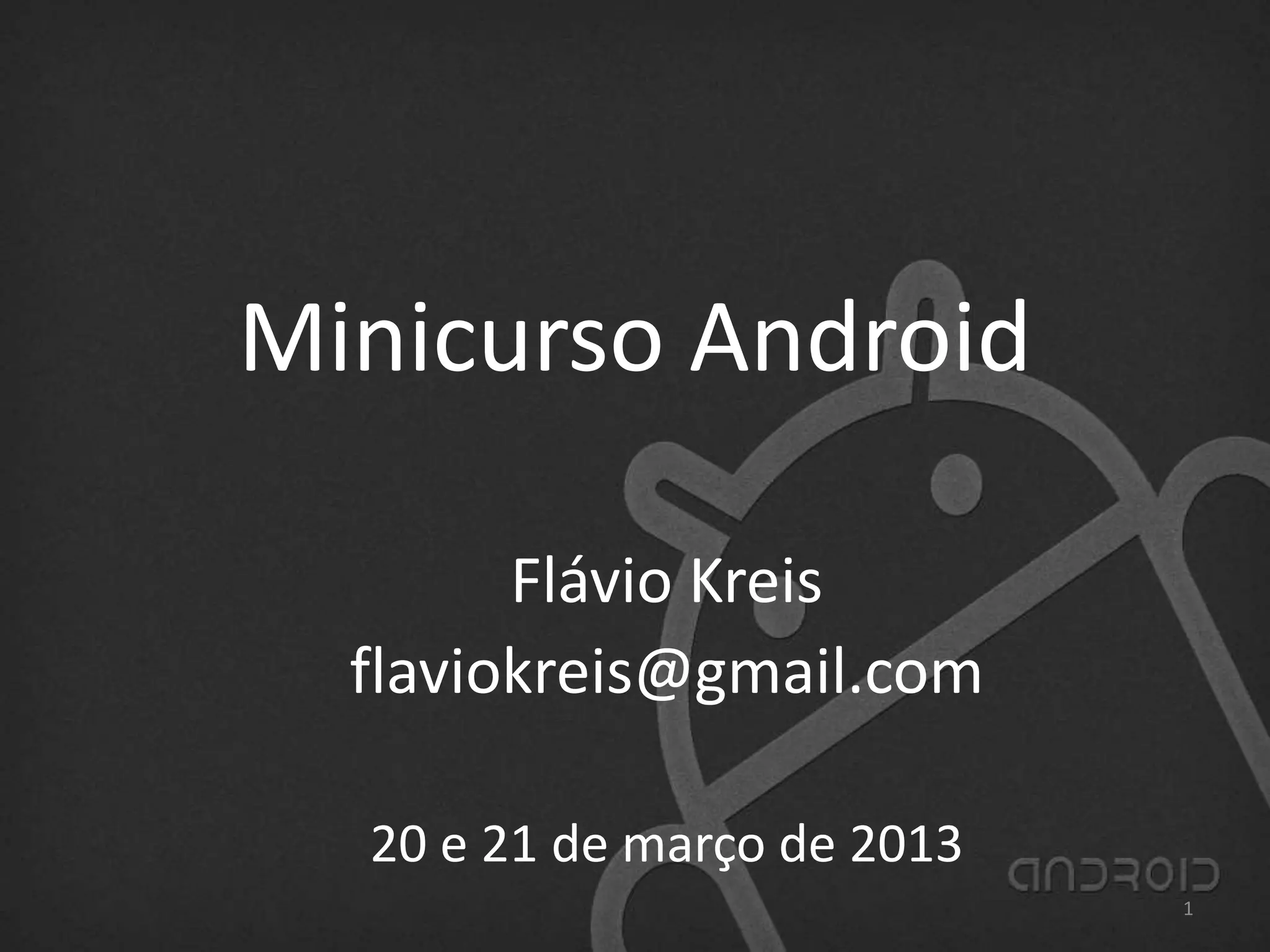 O documento apresenta um minicurso sobre desenvolvimento de aplicativos para Android. A agenda inclui introdução ao Android, mercado e dispositivos, ambiente de desenvolvimento, exemplos simples de programação e conceitos como Activity, Layout, View e Intents.