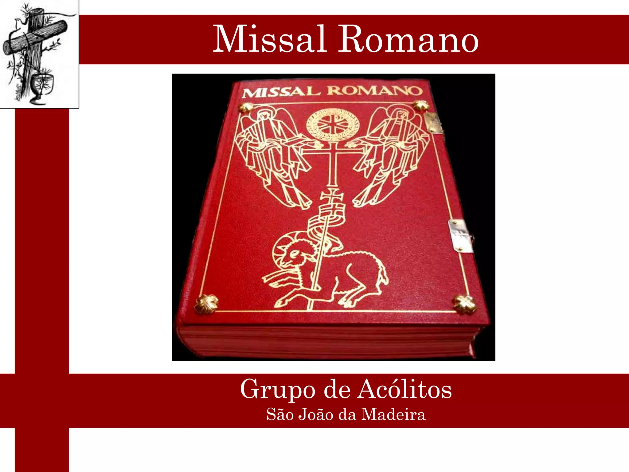 O documento descreve a estrutura do Missal Romano. Divide-se em várias seções como o Próprio do Tempo, Ordinário da Missa, Próprio dos Santos, Missas Comuns, entre outras. Cada seção contém orações e textos próprios para diferentes momentos litúrgicos e celebrações da Igreja Católica.