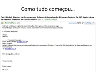 O documento descreve a jornada de Ari Stopassola Junior para realizar seu mestrado em Engenharia de Informática no Instituto Superior Técnico de Portugal. Ele explica como ele se candidatou e foi aceito no programa, os detalhes sobre o currículo do mestrado incluindo disciplinas, propinas e acesso às instalações, e fornece seus contatos.