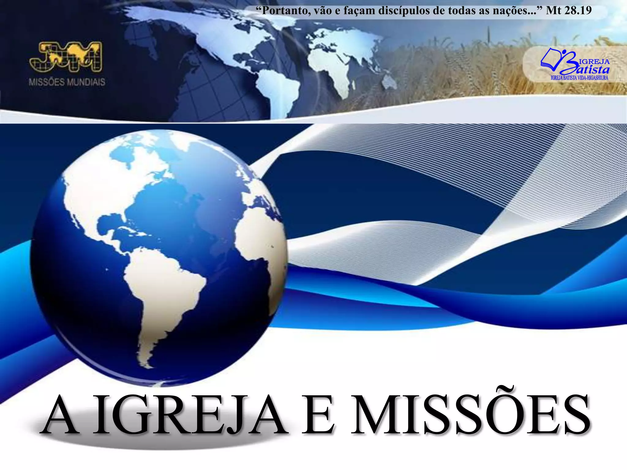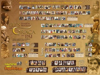 O documento discute a importância das missões cristãs em todo o mundo, fornecendo estatísticas populacionais globais e sobre as principais religiões. Ele também detalha as áreas geográficas onde a Convenção Batista Brasileira realiza trabalho missionário e fornece dados específicos sobre o Japão.