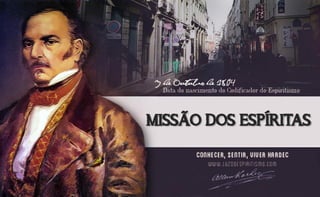A missão dos espíritas é esclarecer as leis de Deus ensinadas por Jesus e preparar o reino do bem, combatendo a ignorância, a hipocrisia e falseamento da lei de amor e caridade. Os espíritas devem propagar os ensinamentos espíritas através da pregação e do exemplo de virtudes como a caridade, abnegação e desinteresse pessoal.