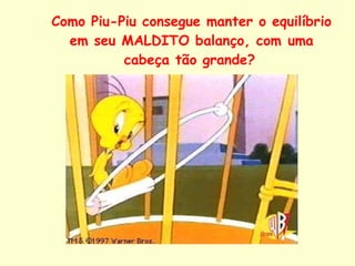 O documento levanta questões sobre mistérios e lógicas de desenhos animados e histórias infantis, questionando como personagens mantém o equilíbrio em balanços, a origem de personagens, por que compram itens caros ao invés de comida, o uso de roupas, efeitos de substâncias consumidas e celebrações em períodos históricos errados.