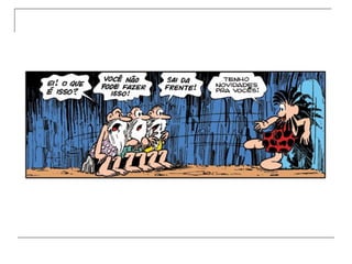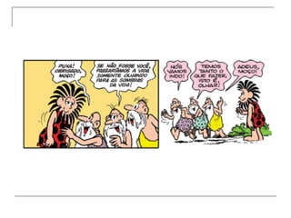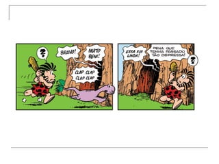 O texto descreve a "Alegoria da Caverna" de Platão, onde a caverna simboliza o mundo em que vivemos e as pessoas presas representam aqueles que não buscam a verdade. Maurício de Souza ilustra essa alegoria de forma divertida, mostrando como as sombras manipulam a mente humana através da televisão nos dias de hoje, assim como nas eras passadas.