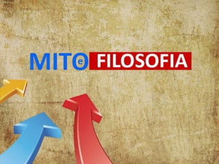 O documento discute mitologia grega, filosofia e o Mito da Caverna de Platão. A mitologia grega usava narrativas com símbolos e deuses para explicar fenômenos naturais. A filosofia aborda problemas fundamentais de forma racional, diferente da mitologia e religião. O Mito da Caverna de Platão discute teoria do conhecimento na República.