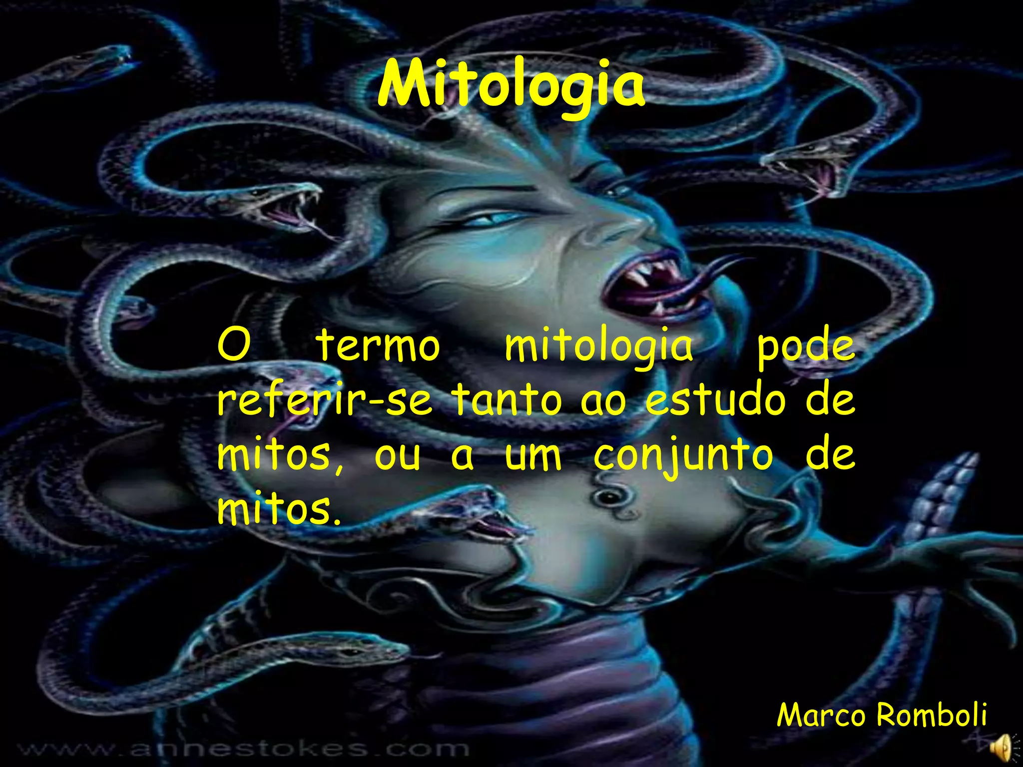 O documento discute diferentes tipos de mitologia, incluindo a mitologia grega, egípcia e romana. Ele fornece detalhes sobre os principais deuses dessas mitologias, como Zeus, Poseidon e Hades na mitologia grega, Rá, Anúbis e Chu na mitologia egípcia, e Júpiter, Vênus e Marte na mitologia romana.