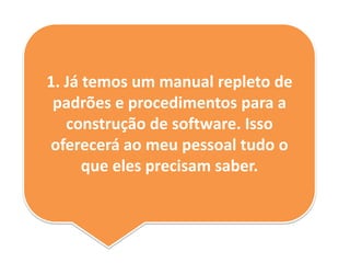 Este documento apresenta abordagens problemáticas para a engenharia de software, como a crença de que documentação e planejamento iniciais não são necessários, que mudanças de requisitos podem ser facilmente acomodadas e que o único produto importante é o código executável.