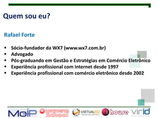 O documento discute verdades e mitos sobre plataformas de comércio eletrônico, destacando os diversos modelos de negócio como SaaS e open source, além de suas vantagens e desvantagens. Também ressalta a importância da infraestrutura e segurança na operação de lojas virtuais, bem como a percepção de segurança para vendas. Por fim, enfatiza que a plataforma é apenas uma parte da operação e que investimentos significativos devem ser feitos em sua evolução e na infraestrutura.