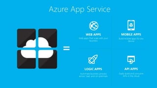 O documento descreve o que é o Azure e o Azure App Services, especificamente o Azure Web Apps. Explica que o Web Apps permite múltiplos ambientes de desenvolvimento e produção separados por "slots" que podem ser alternados com pouco impacto para os usuários. Também lista algumas configurações que podem ser alternadas entre os slots como settings de aplicação e conexões de dados.
