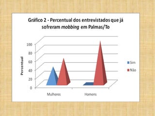 O documento discute o fenômeno do mobbing, ou assédio moral no ambiente de trabalho. Apresenta suas definições, causas, características e consequências, incluindo danos à saúde física e mental dos trabalhadores. Também aborda a necessidade de prevenção e tratamento multidisciplinar para reduzir esse tipo de conduta abusiva nas organizações.