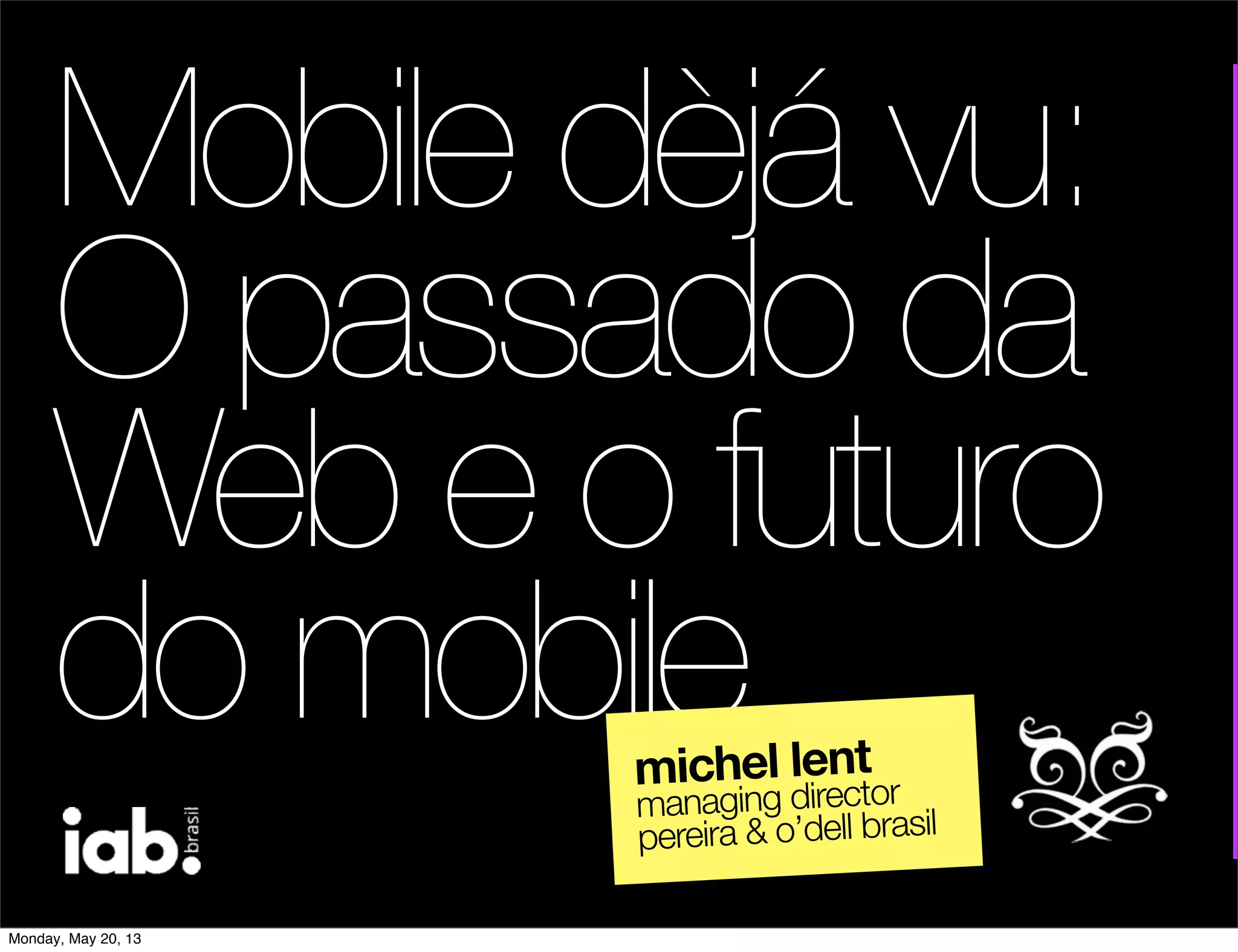 O documento discute as semelhanças e diferenças entre a web em 2000 e o mobile marketing hoje. Apresenta como o mobile evoluiu desde os primeiros experimentos de publicidade até se tornar onipresente, com 140 milhões de usuários móveis no Brasil. Também destaca que, apesar do crescimento, o pensamento mobile ainda não está totalmente integrado nas estratégias de marketing.