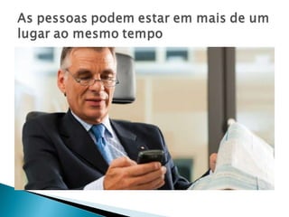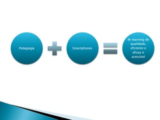 O documento discute o conceito de aprendizagem móvel (m-learning) e como as tecnologias móveis podem ser usadas para apoiar a aprendizagem em qualquer lugar e a qualquer hora, permitindo a mobilidade de informações educacionais. No entanto, a pedagogia ainda precisa acompanhar o avanço das técnicas para que a mobilidade realmente enriqueça o processo de ensino-aprendizagem.
