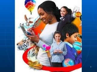 O documento descreve o mobile learning (aprendizagem móvel), incluindo sua história, características, teorias, tecnologias envolvidas e aplicações. Discute como os dispositivos móveis podem ser usados para expandir a aprendizagem para além das salas de aula e como as ferramentas da Web 2.0 facilitam a criação e compartilhamento de conteúdos educacionais nesses dispositivos. Também fornece estatísticas sobre o uso de celulares em Portugal.