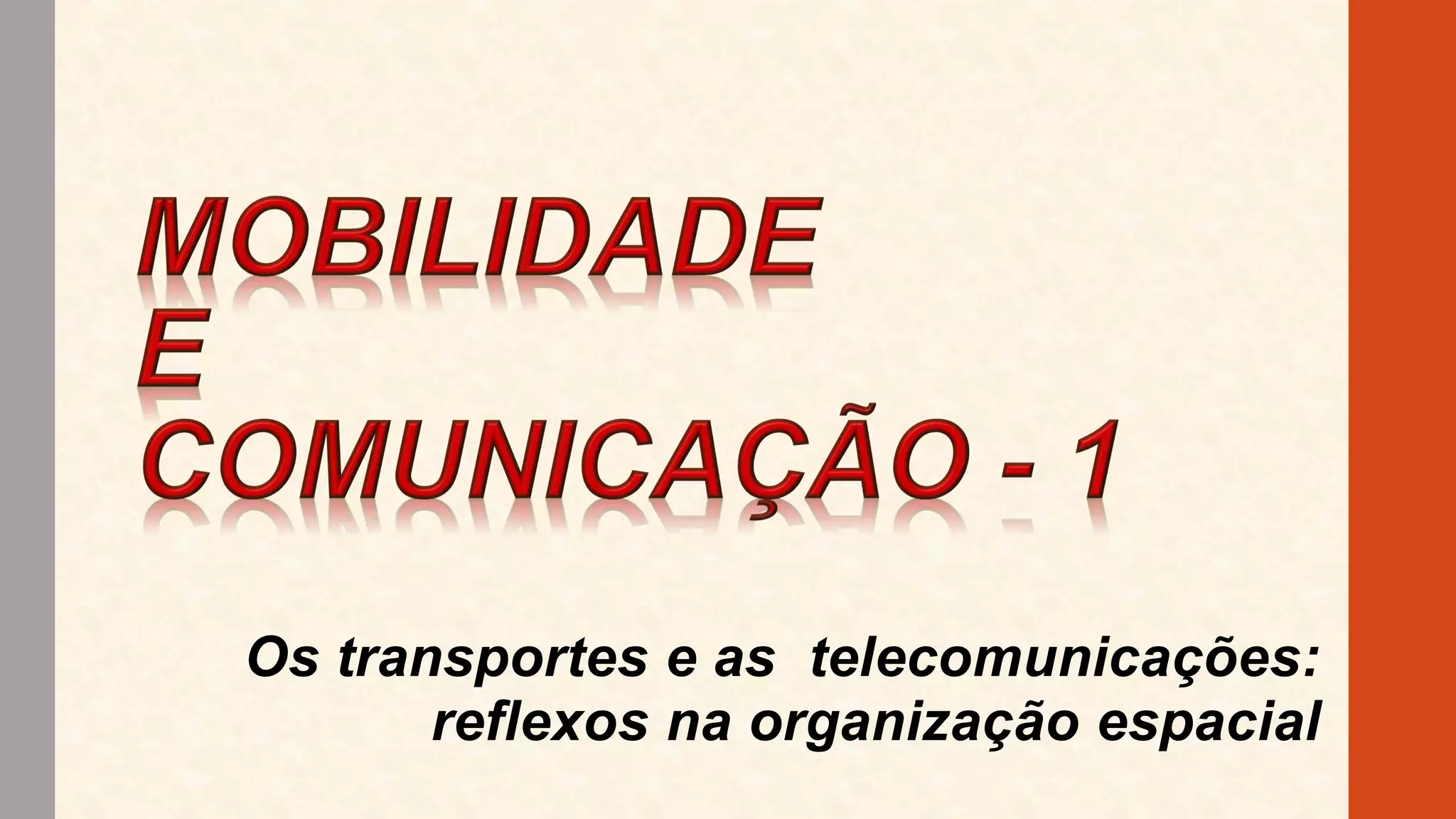 O documento discute os transportes e telecomunicações e como eles afetam a organização espacial. Ele descreve os diferentes modos de transporte, incluindo suas vantagens e desvantagens, e como a evolução histórica levou a mudanças nos transportes e redução das distâncias. Ele também discute como a teoria dos grafos pode ser aplicada para analisar redes de transporte.