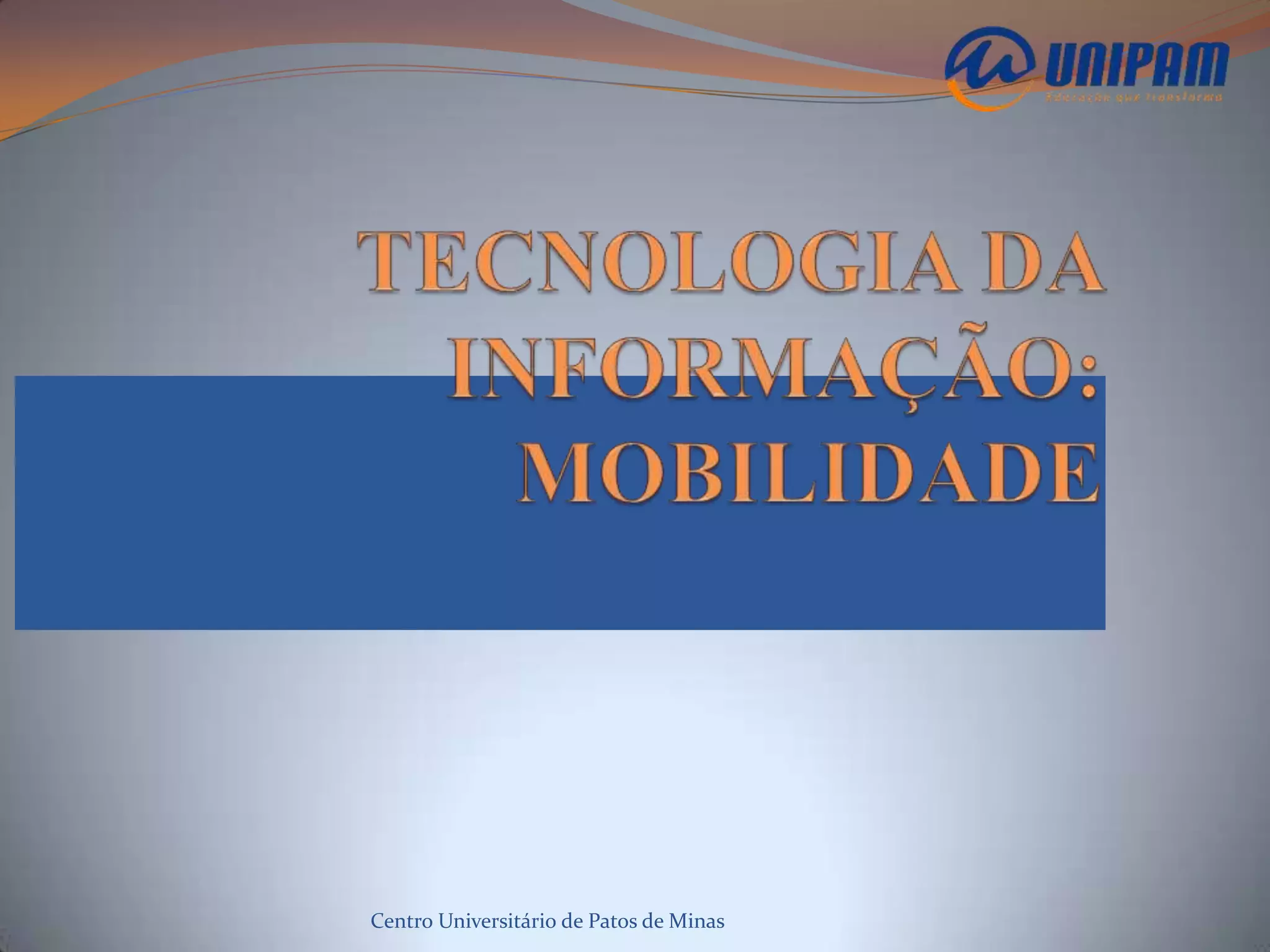 O documento discute as categorias de dispositivos de computação móvel como laptops, PDAs e smartphones. Também aborda brevemente a história da computação móvel desde o Newton da Apple em 1992 e como as empresas utilizam dispositivos móveis, incluindo benefícios como maior produtividade e flexibilidade. Por fim, destaca a importância da segurança da informação em dispositivos móveis.