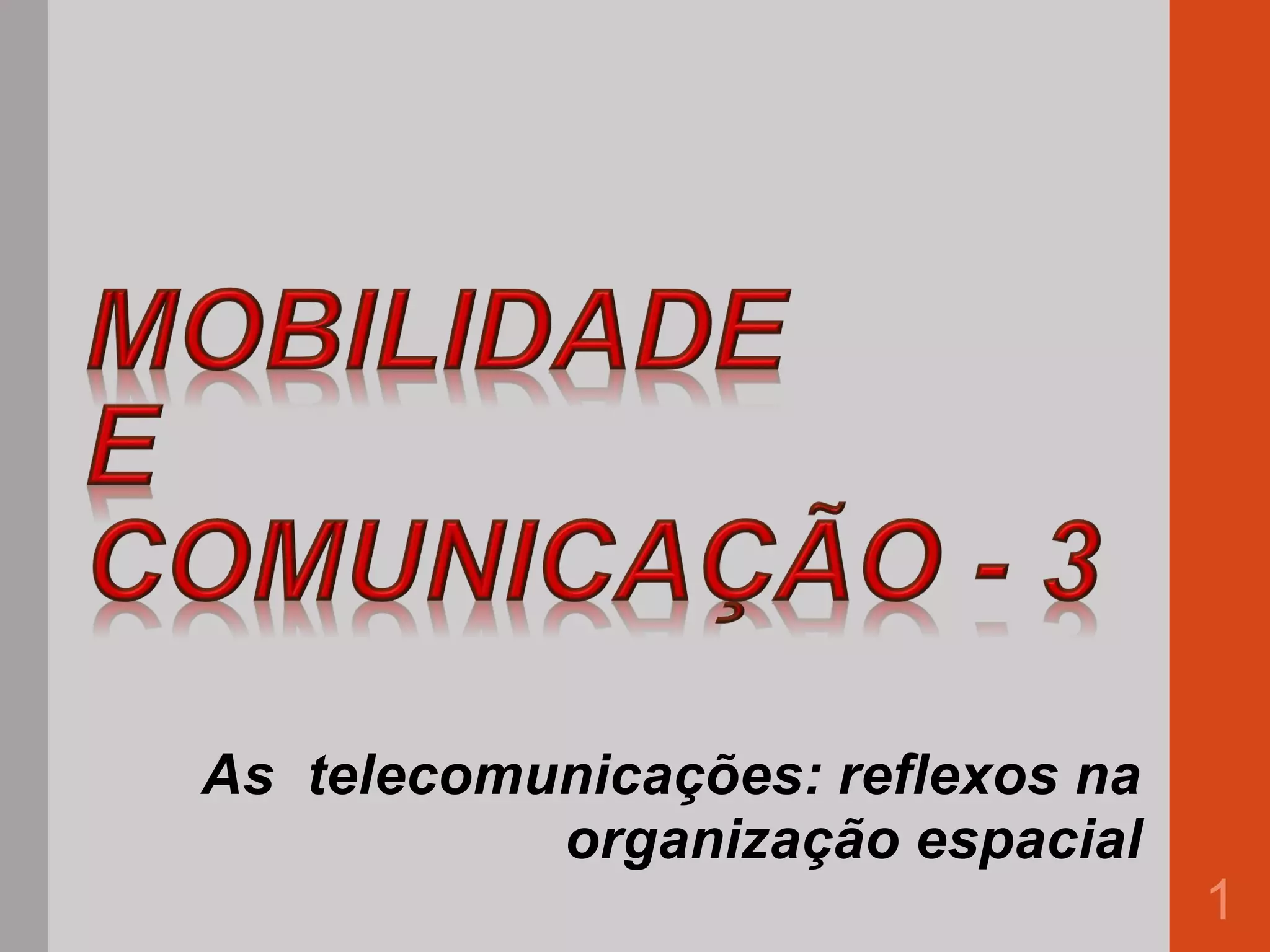 O documento discute a evolução histórica das formas de comunicação humana, desde as pinturas rupestres até as modernas tecnologias de comunicação. Apresenta como os humanos comunicavam no passado através de sinais de fogo, tambores, pombos-correio e escrita, e como as novas tecnologias revolucionaram a comunicação. Também discute como a revolução da informação está a mudar o espaço geográfico através do crescimento de cidades, fluxos globais de informação e a emergência de uma economia