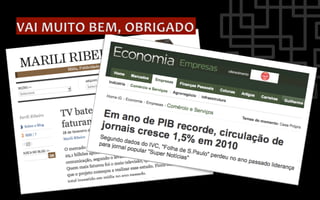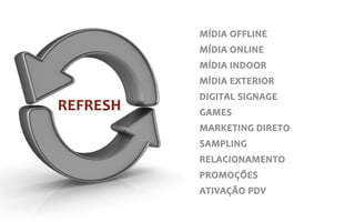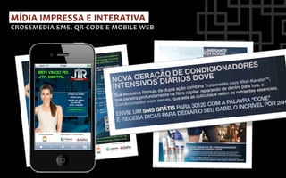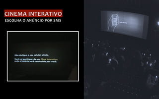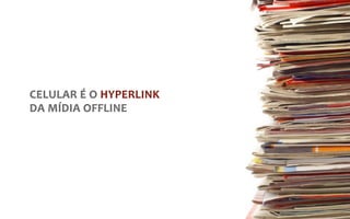O documento discute o uso de SMS e voz como ferramentas offline para marketing móvel, destacando diferentes modelos como marketing interativo, corporativo e broadcast. É apresentado um quadro comparativo dos tipos com descrição, quem paga, preços e exemplos.