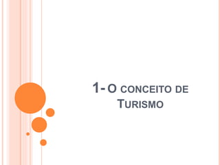 1. O documento discute os conceitos e fundamentos do turismo. 2. Inclui definições de turismo da OMT e outros, focando na deslocação temporária de pessoas para fora de suas áreas habituais. 3. Apresenta diferentes abordagens para classificar o turismo, como por origem dos visitantes, duração da estadia e motivações.