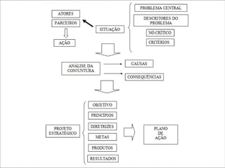Este documento fornece diretrizes para a elaboração de planos municipais de combate ao desmatamento no Brasil. Ele discute conceitos-chave como eixos temáticos, ações e programas, e fornece exemplos de como estruturar esses elementos nos planos estaduais existentes.