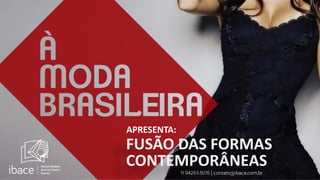 O documento descreve uma mostra de moda chamada "Fusão das Formas", que apresentará 30 looks criados por estudantes baseados nas relações entre arquitetura e moda. A mostra visa valorizar a identidade da moda brasileira apoiando novos talentos e será financiada pela Lei Rouanet. Ela ocorrerá em agosto de 2015 por 27 dias.