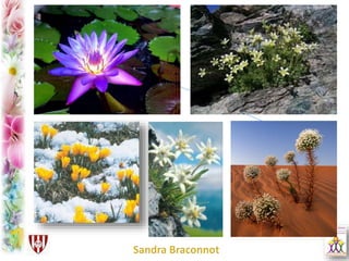 O documento lista diferentes tipos de flores como azálias, Dombeya e Diphylleia grayi e discute aprender com a natureza. Ele também convida as pessoas a se juntarem a uma comunidade no Facebook para falar sobre flores e ser como flores para fazer o mundo florescer.