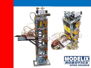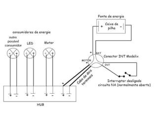 O documento aborda o conceito de robótica educacional, descrevendo suas principais características e os módulos que a compõem, como mecânica, atuadores e circuitos elétricos. Ele detalha a montagem de estruturas e componentes, e a importância de habilidades como criatividade e resolução de problemas para o trabalhador do século XXI. Além de interações práticas com circuitos, o texto sugere o uso de tecnologia de microcontroladores, enfatizando a flexibilidade e adaptabilidade no aprendizado.