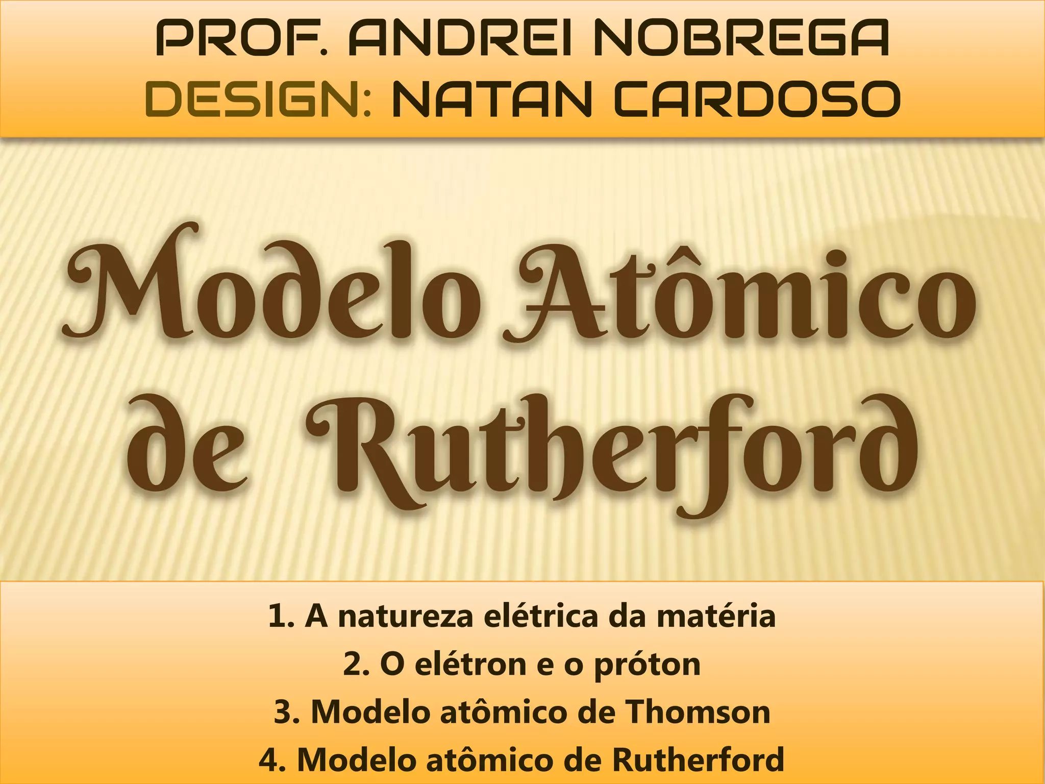 O documento descreve os principais modelos atômicos históricos, incluindo: 1) O modelo de Thomson, no qual o átomo é uma esfera de carga positiva com elétrons incrustados na superfície; 2) O modelo de Rutherford, no qual experimentos com partículas alfa mostraram que o átomo é principalmente vazio, com uma região densa e carregada positivamente no centro (o núcleo); 3) O modelo atual, no qual o núcleo contém prótons e nêutrons e é cercado