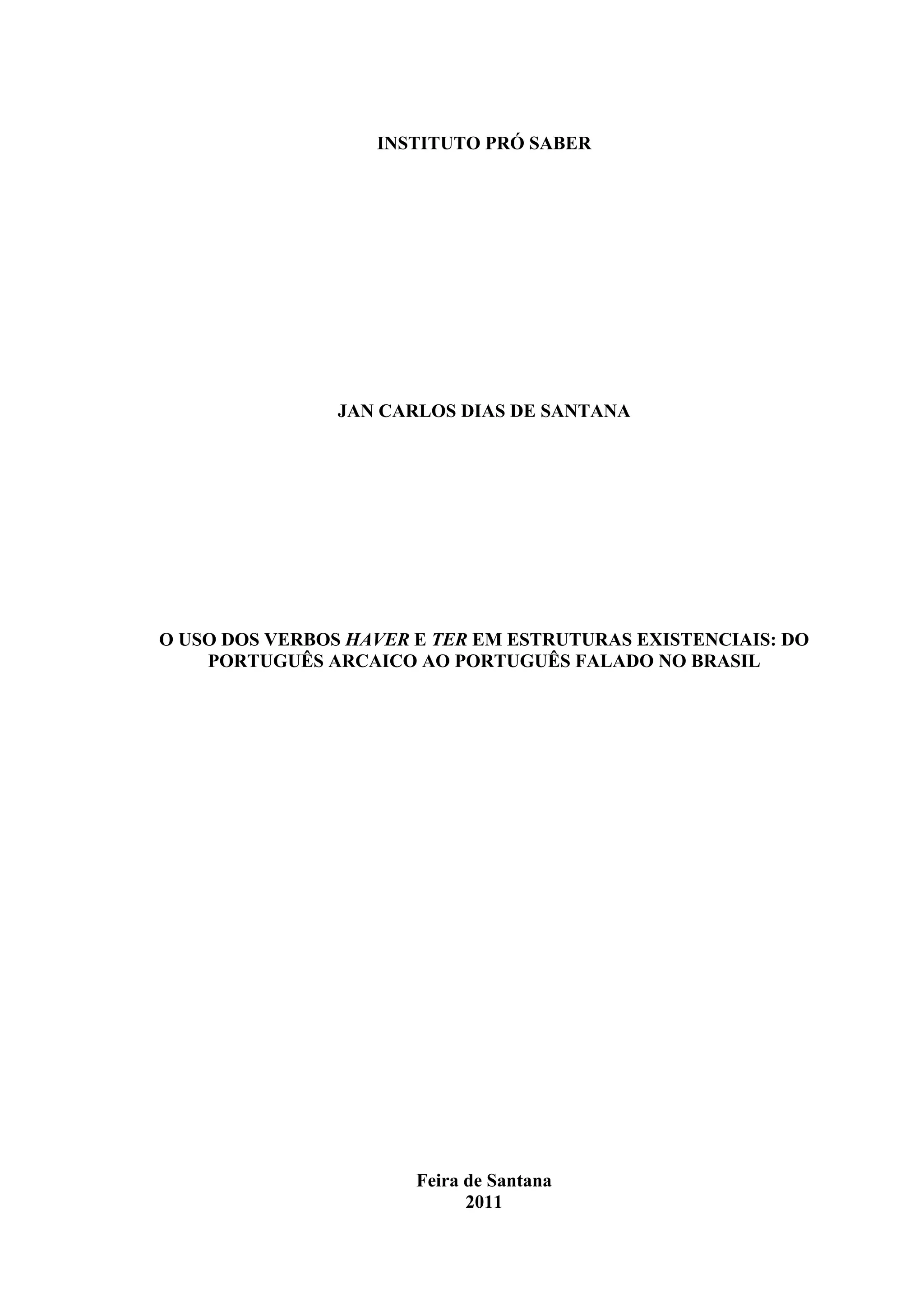 Este documento apresenta uma pesquisa sobre a variação no uso dos verbos haver e ter em estruturas existenciais no português, desde o período arcaico até o português falado no Brasil. Analisa textos antigos e a literatura gramatical brasileira sobre o assunto. Os resultados mostram que a variação ocorre desde o português arcaico e que o verbo ter ganhou o traço semântico de existencial ao longo do tempo, entrando em concorrência com o haver. No Brasil, a variação é mais comum na